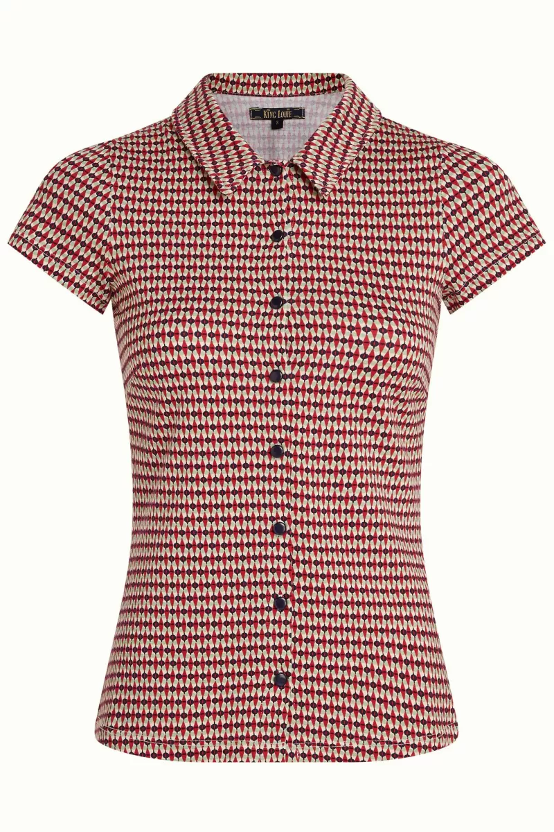 Blouse Met KraagDoorknoopsluitingKorte MouwenJerseyStretch StofGrafische Print