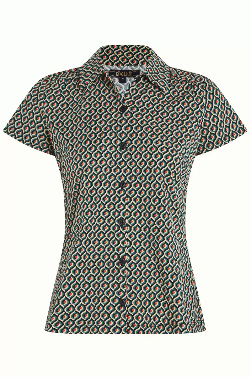 Blouse Met KraagKnoopsluitingKorte MouwenJerseyStretch StofGrafische Print
