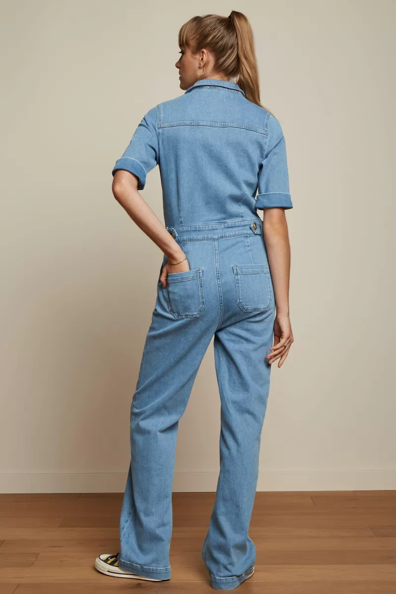 Vrouw King Louie Jumpsuits-Garbo Zip Jumpsuit Strata Denim
