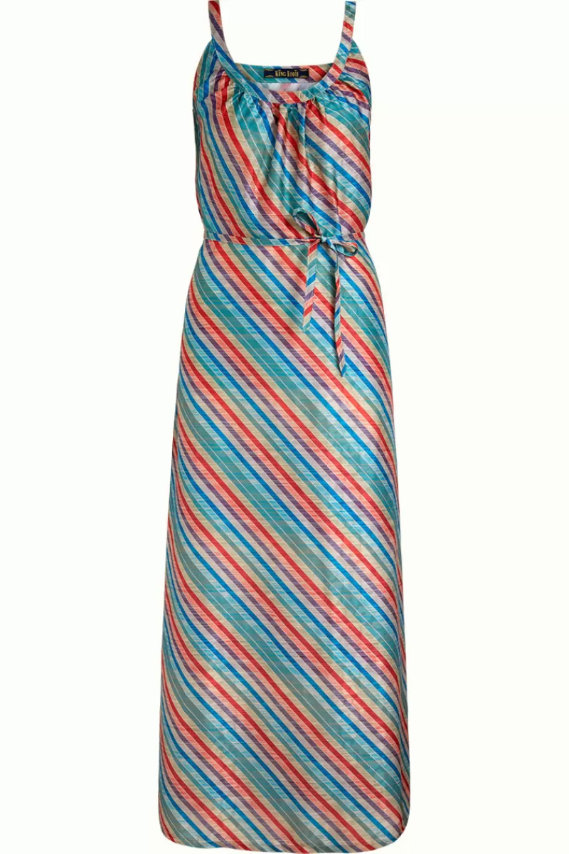 Maxi JurkSpaghettibandjesStrikceintuur In Dezelfde StofUitlopende RokGeweven StofNon StretchSchuin Gestreept