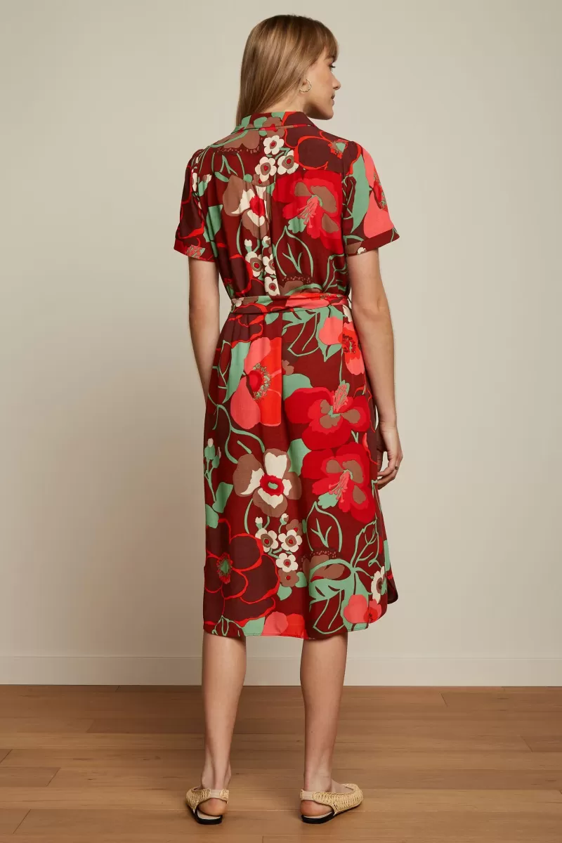 Jurk Met BloemenprintOverhemdkraagKorte MouwenKorte RokCoupenaden SchouderpasDoorknoopsluitingStrikceintuur In Dezelfde …