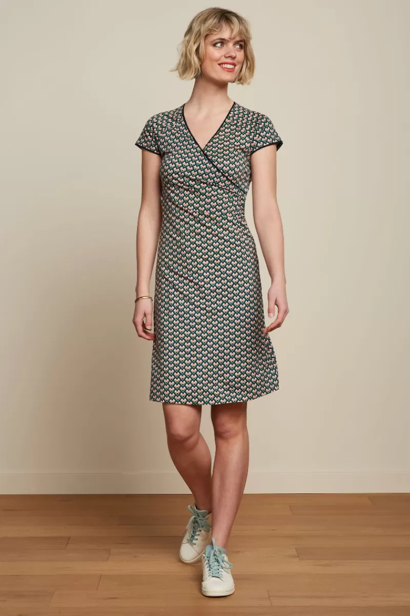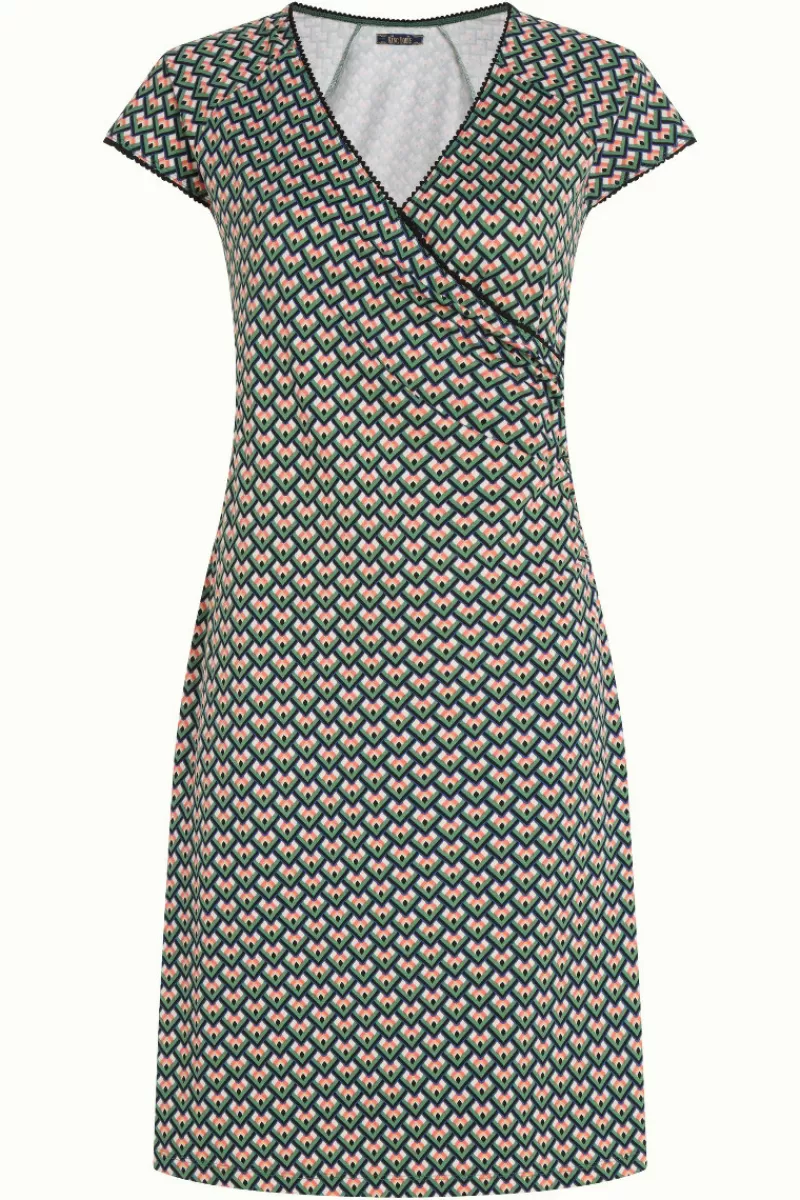 OverslagjurkAansluitendKorte Raglan MouwenLicht Uitlopende RokPlooitjes In De TailleAfgewerkt Met Ric Rac RandjeStretchs…