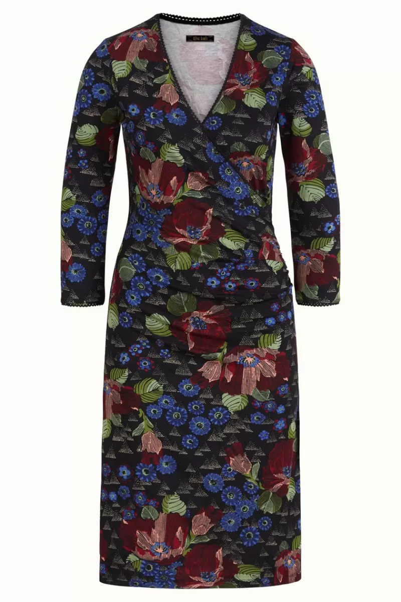 OverslagjurkAansluitendRaglan MouwenLicht Uitlopende RokPlooitjes In De TailleAfgewerkt Met Ric Rac RandjeStretch StofJe…