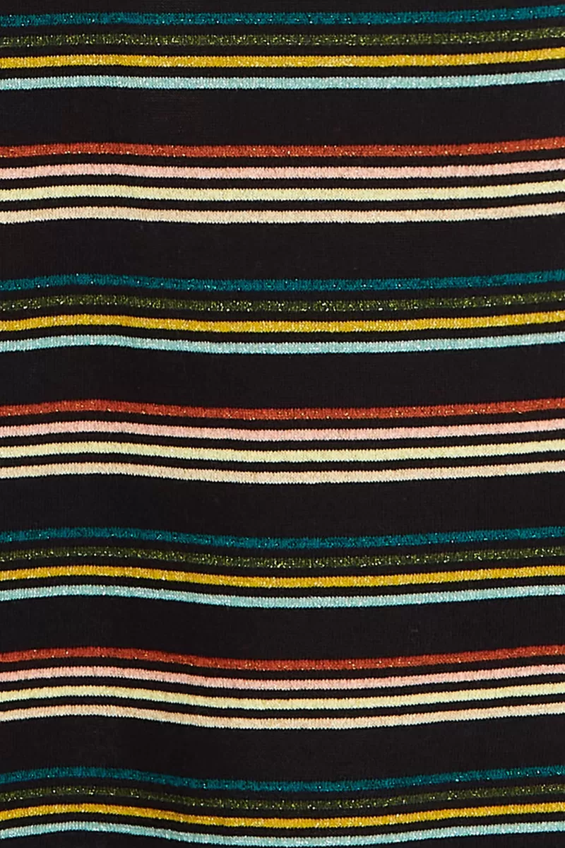 Gebreide ZomerjurkSmalle SchouderbandjesV-HalsStrikceintuurStretchStrepen Patroon Met Glitter