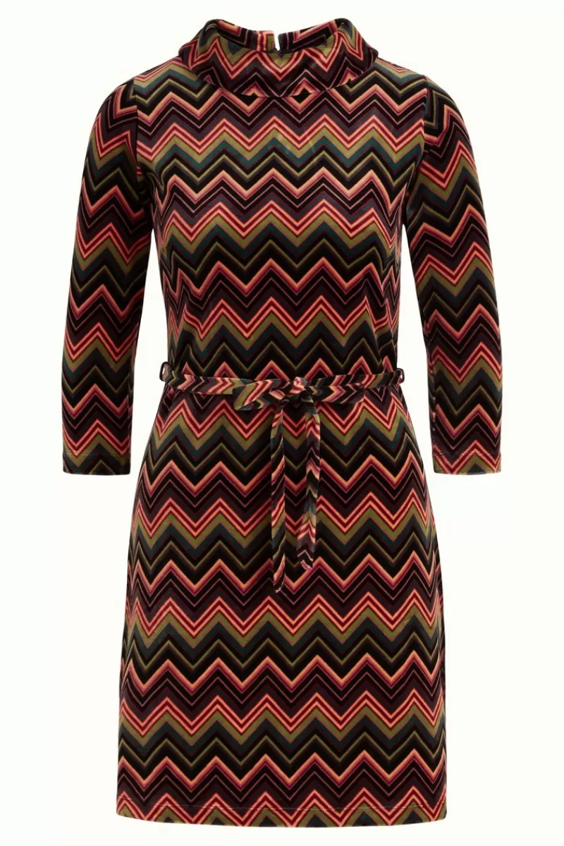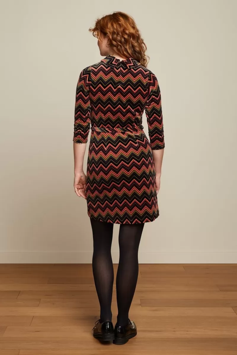 Tuniek JurkOmgeslagen KraagDriekwart MouwenRitssluiting Op De RugStrikceintuurJersey Nikki VeloursStretch StofZigzag Pri…