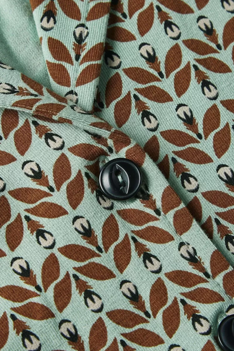 Wijd Uitlopende JurkKorte MouwenKnoopsluitingSjaalkraagStrikceintuurJerseyStretchstofGrafische Print