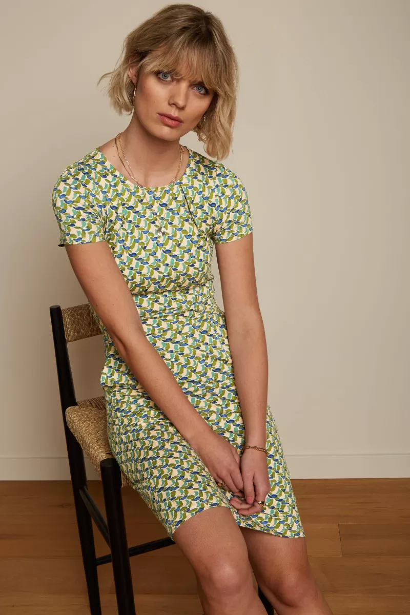 Jurk Met Aangesloten FitKorte MouwenRonde Hals Met PlooienVaste TaillebandSteekzakkenJerseyStretchstofOrganische Print