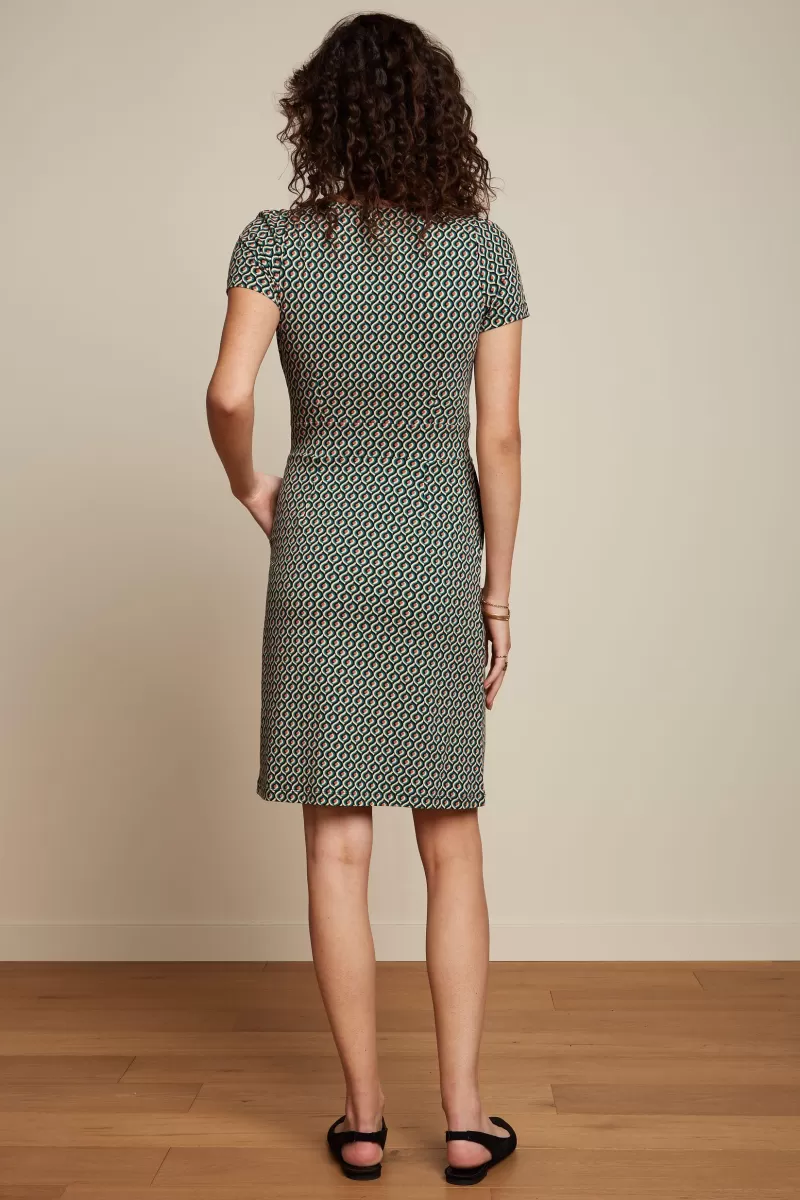 Jurk Met Aangesloten FitKorte MouwenRonde Hals Met PlooienVaste TaillebandSteekzakkenJerseyStretchstofGrafische Print