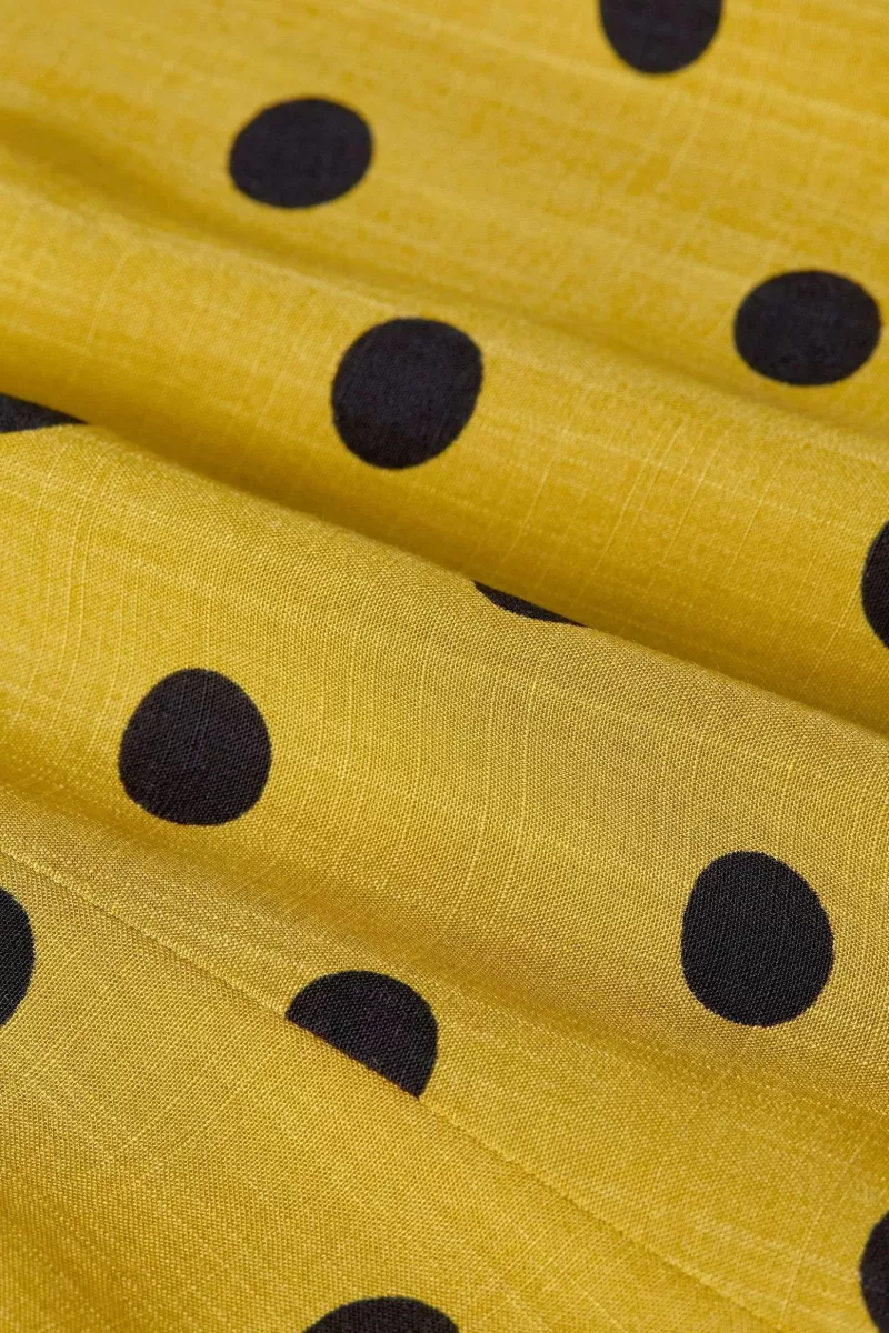 DoorknoopjurkKraagPlooitjes Op De BorstStrikceintuur In Dezelfde StofWijd Uitlopende Midi RokGewevenNon StretchStippenpr…