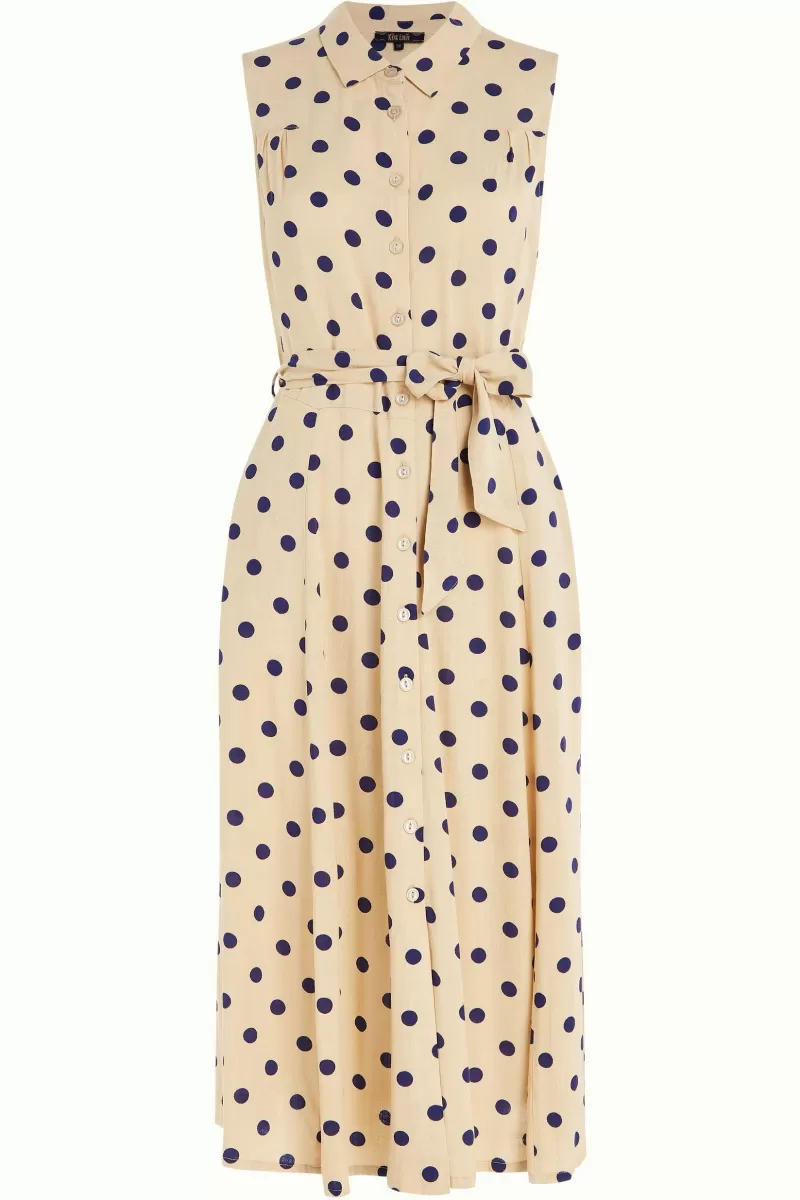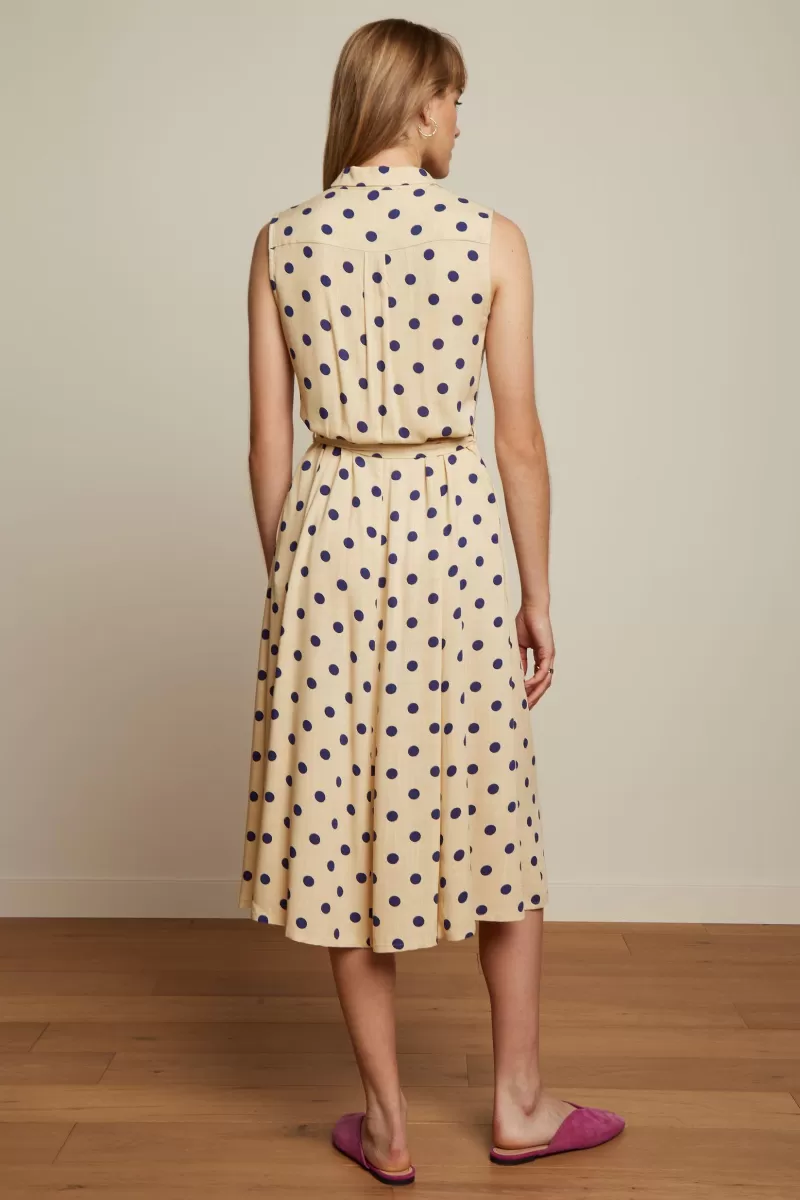 DoorknoopjurkKraagPlooitjes Op De BorstStrikceintuur In Dezelfde StofWijd Uitlopende Midi RokGewevenNon StretchStippenpr…