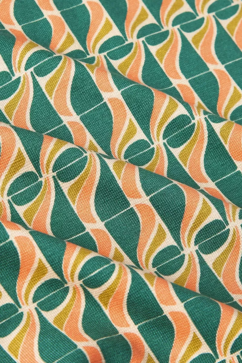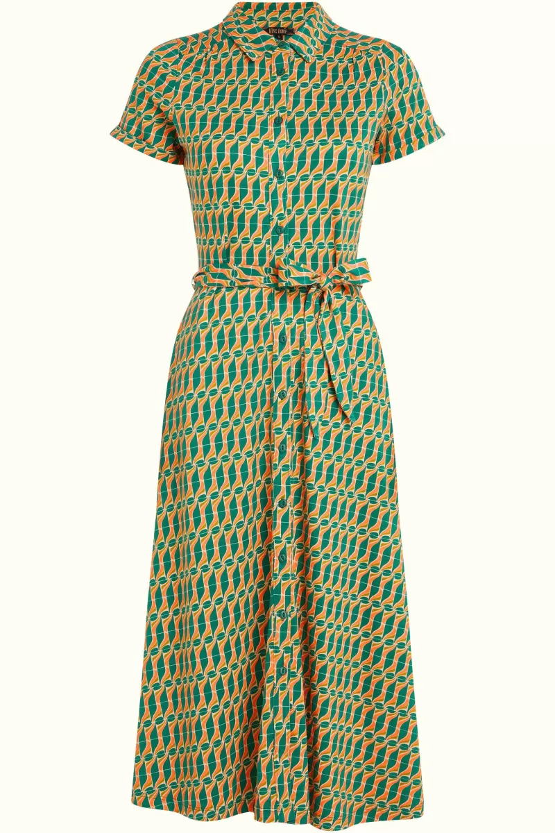 Jurk Met Korte MouwenBlousekraagMidi RokCoupenadenDoorknoopsluitingStrikceintuurSteekzakkenStretch StofJerseyGrafische P…