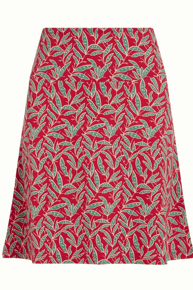 A-Lijn RokBrede TaillebandStretch StofJerseyBladeren Print