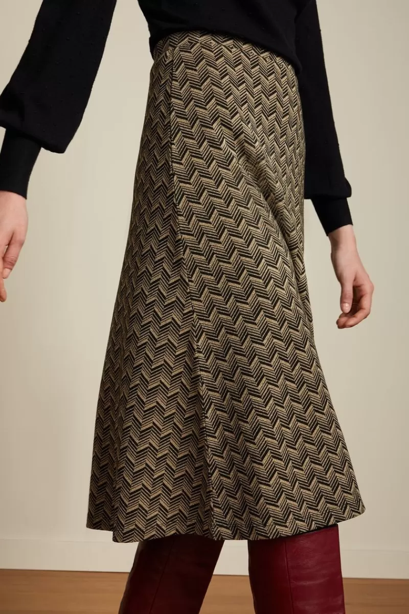 Wijd Uitlopende RokSmalle Elastische TaillebandJersey JacquardStretch StofGrafische Print Met Glitter