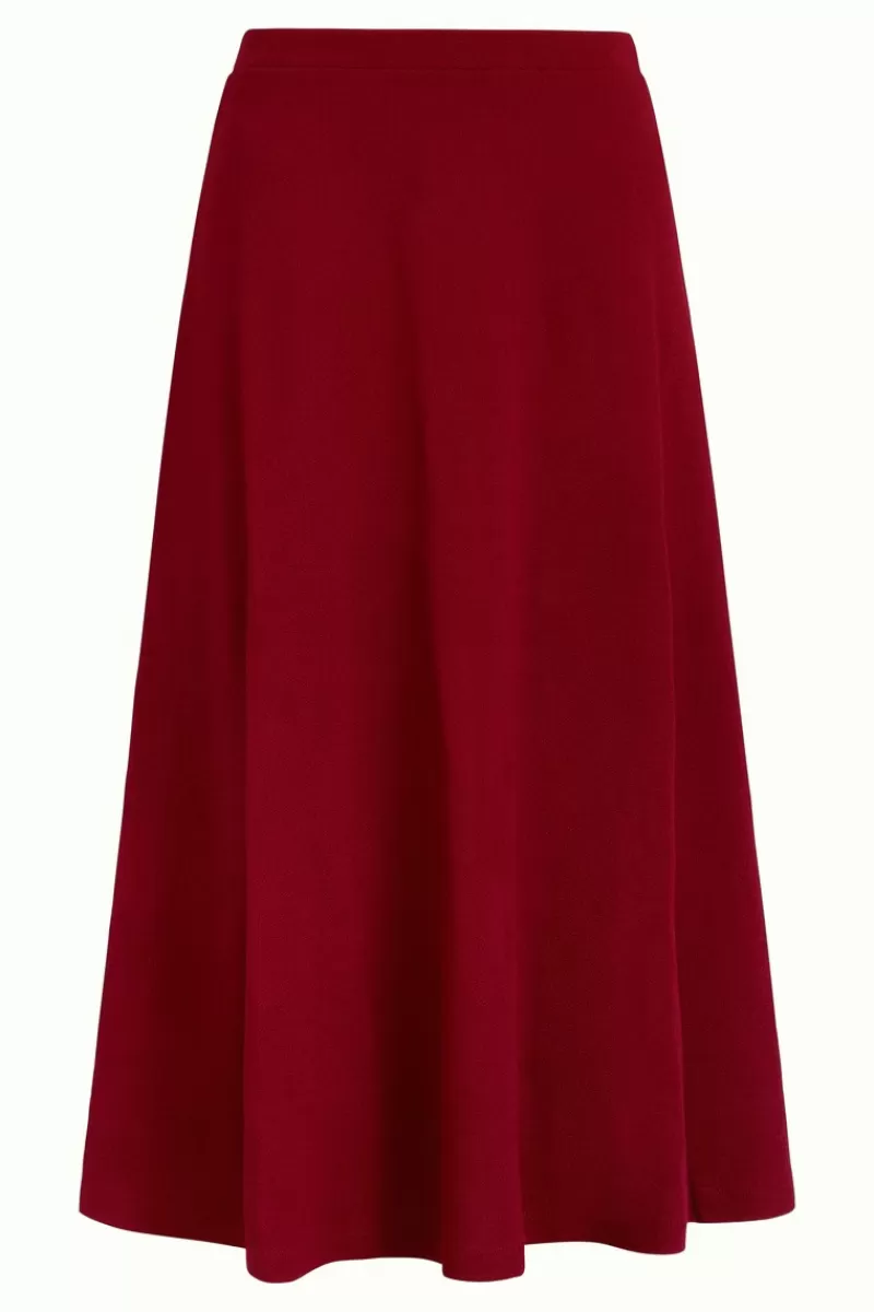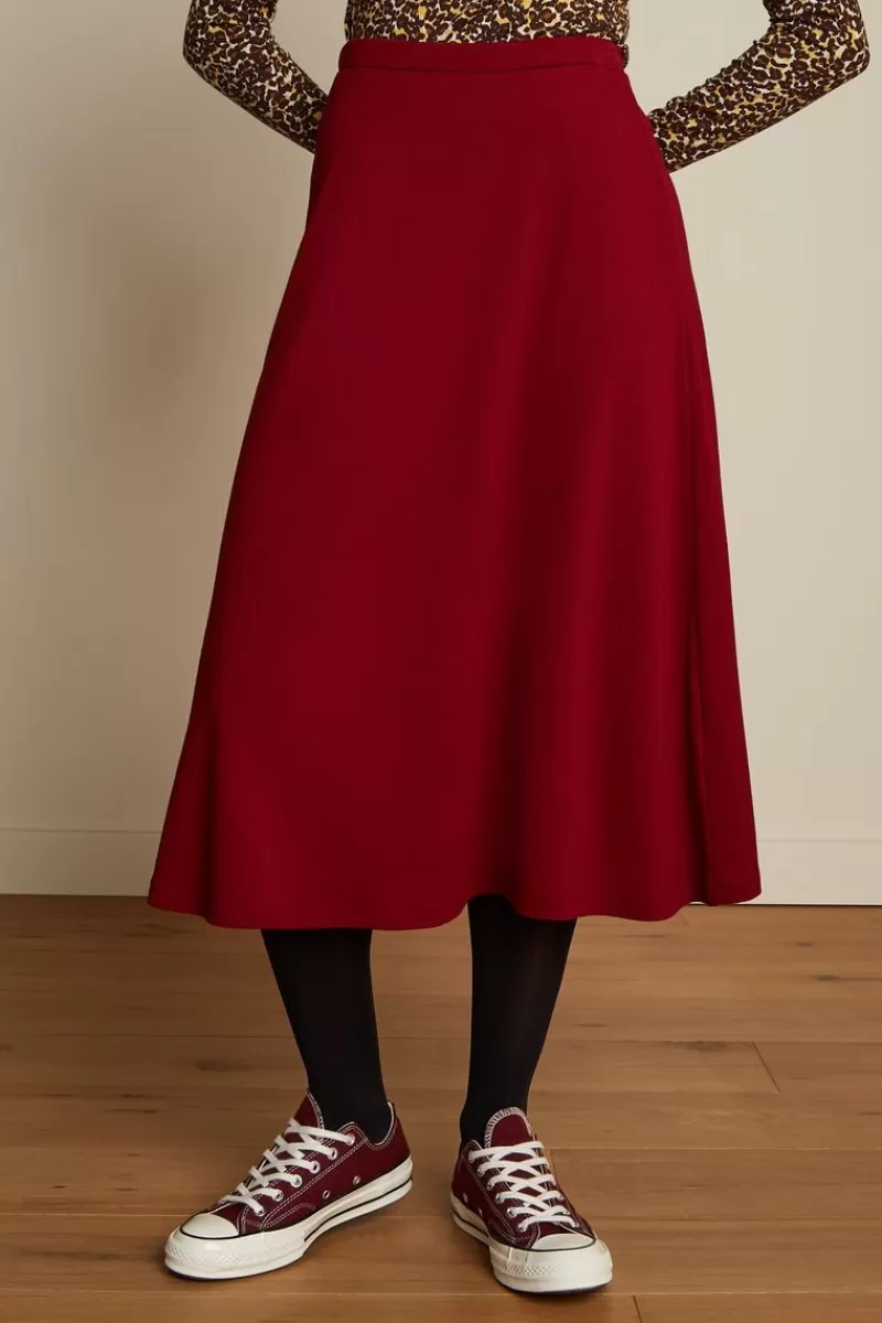Wijd Uitlopende Midi RokDunne TaillebandJerseyStretch Stof