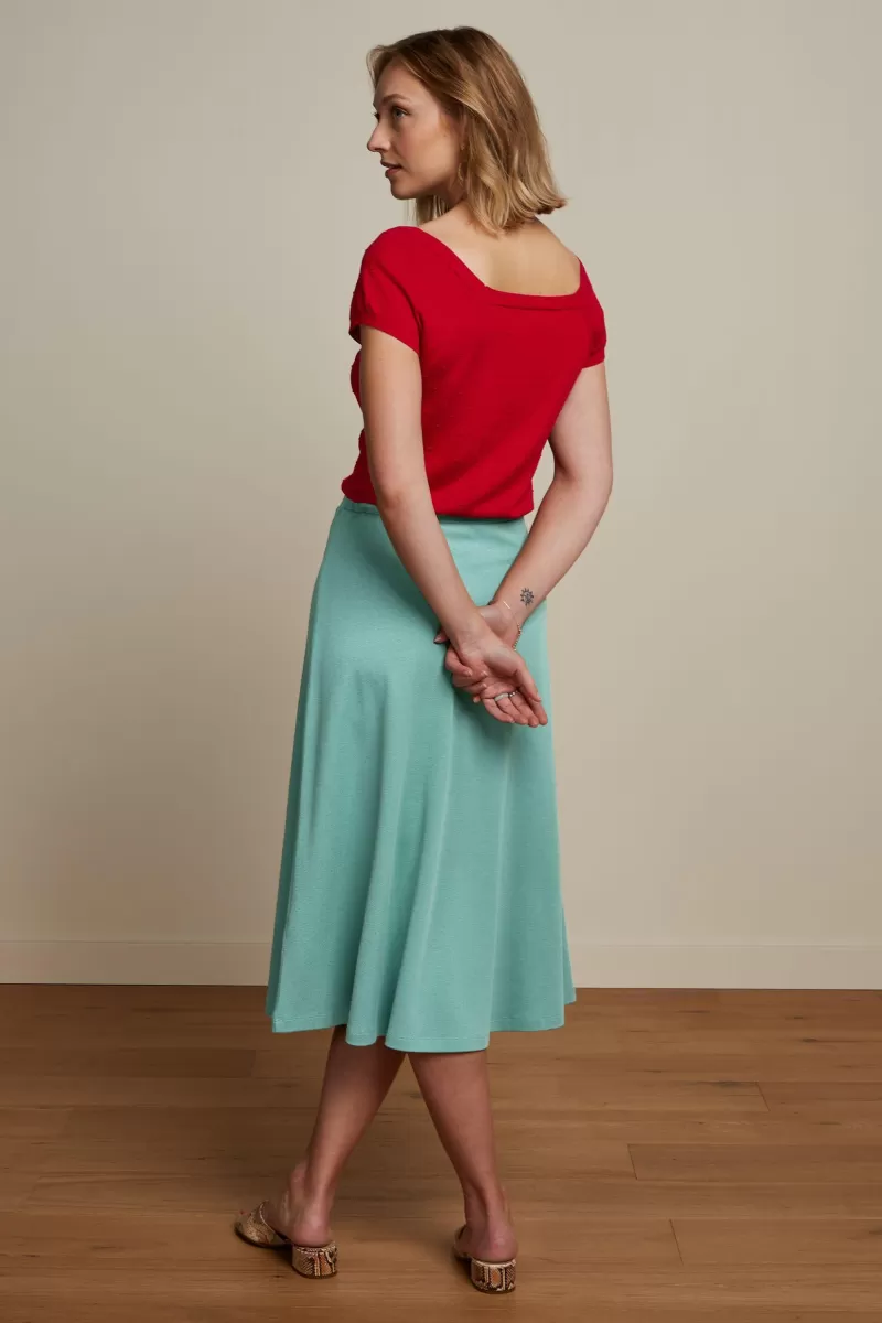 Wijd Uitlopende Midi RokDunne TaillebandJerseyStretch Stof