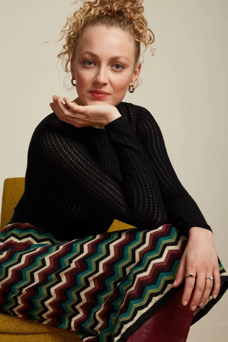 Gebreide RokElastische TaillebandAjour Knit Met GlitterStretch StofZigzagpatroon