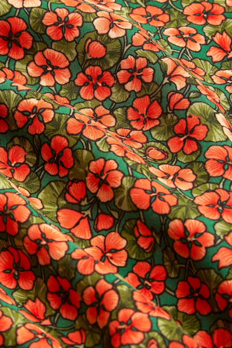 Wijd Uitlopende RokPlooien Vanuit De TailleZakken VoorKnoopsluiting Aan De ZijkantGewevenNon-StretchBloemenprint