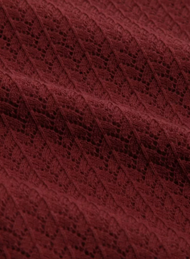 Ajour Gebreide TopRonde HalsLange MouwenGeribbelde BoordenGebreidStretch