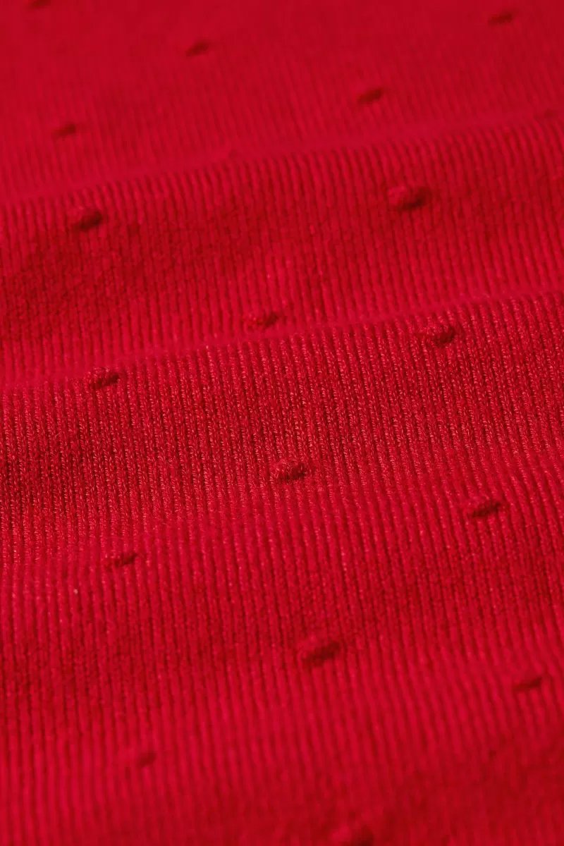 Gebreide TopV-HalsKorte Pofmouwen Met Manchetten.Geribbelde BoordenOpgebreide BolletjesStretch