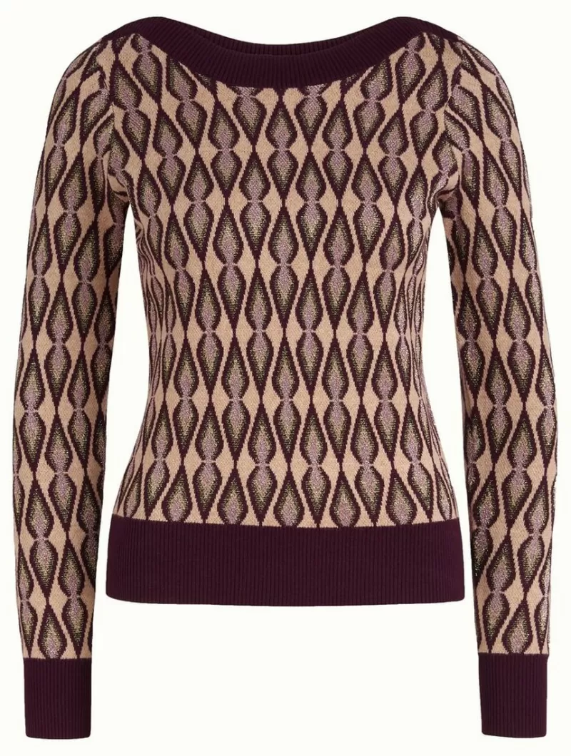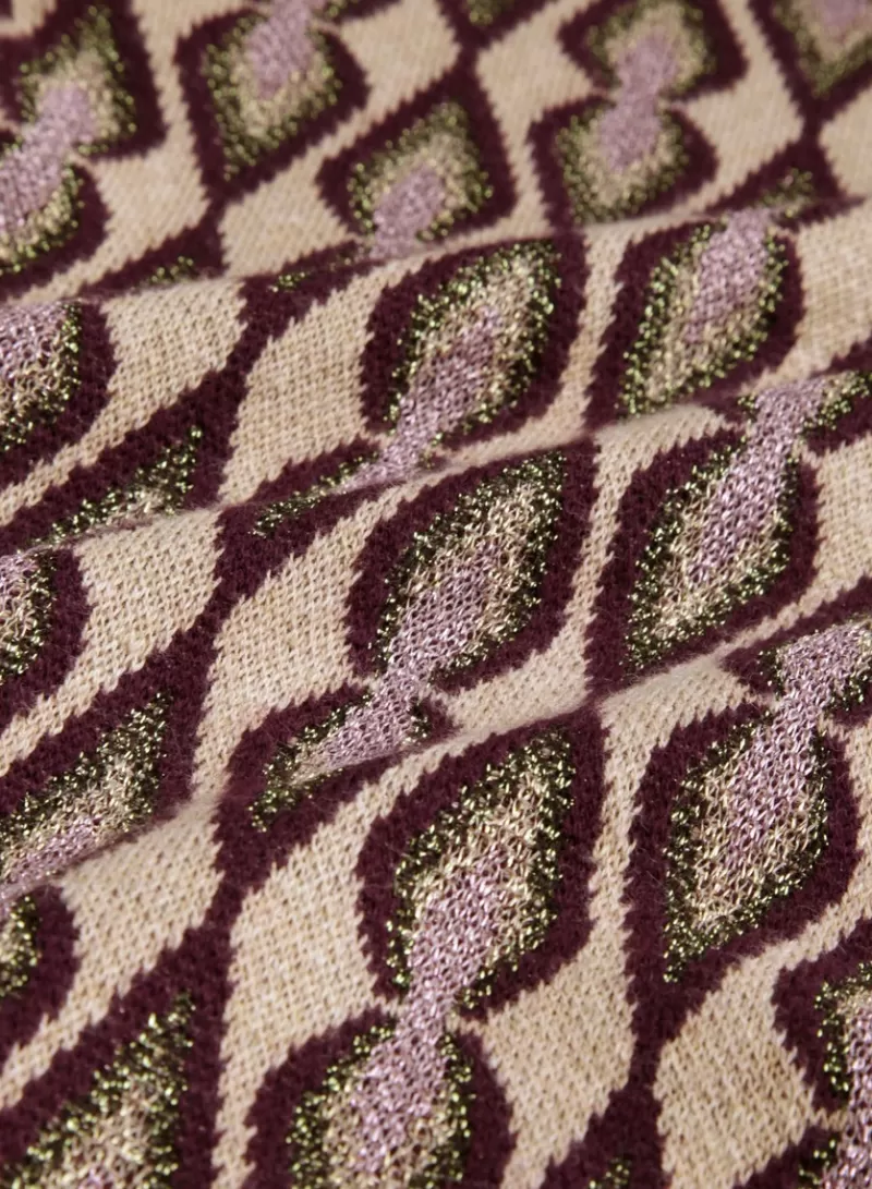 Top Met BoothalsLange MouwenContrasterende, Geribbelde Zoom En ManchettenJacquard Breisel Met GlitterStretchGrafisch Mot…