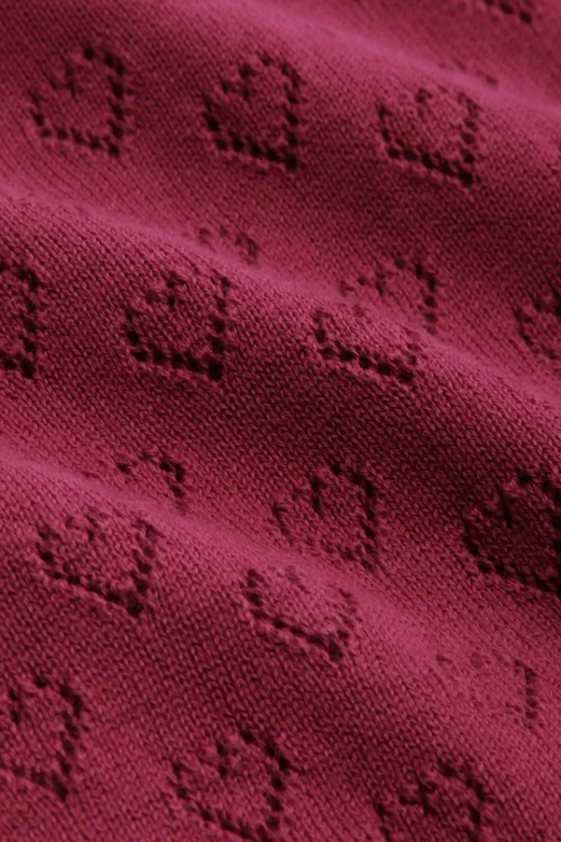 Top Met Hartjes MotiefRonde HalsLange, Lichtgeposte MouwenGeribbelde Zoom En ManchettenAjour Knit