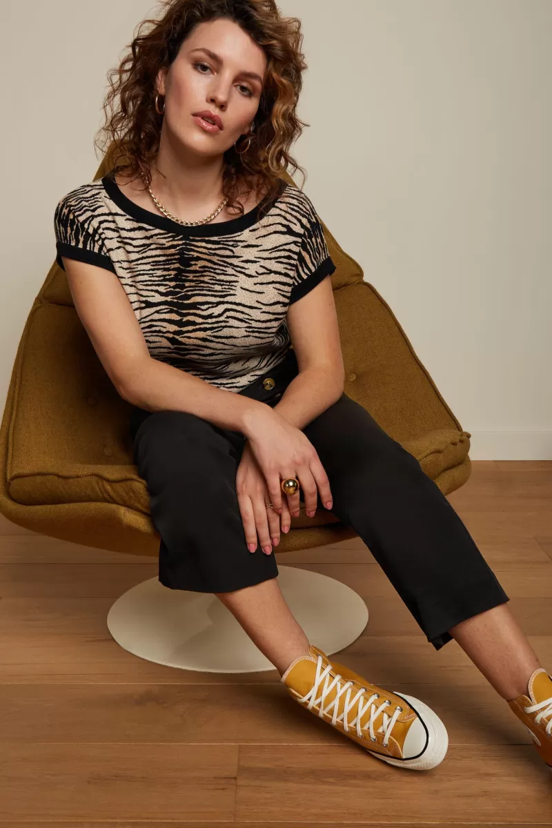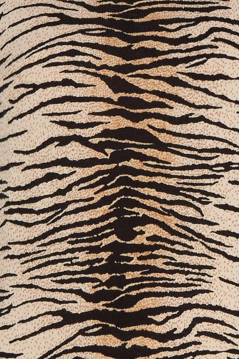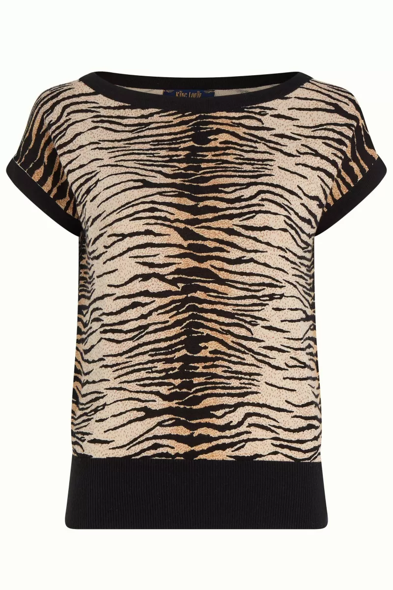 Top Met BoothalsKorte MouwenContrasterende BoordenRonde HalsGebreidStretchstofTijgerprint