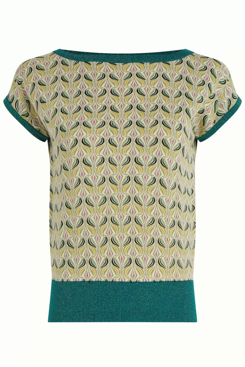Top Met BoothalsKorte MouwenGeribbelde Zomen En ManchettenKnitStretch StofGrafische Print