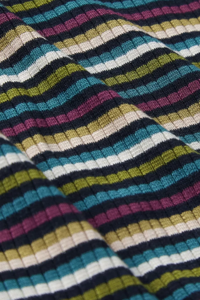 Top Met Dubbele V-HalsKorte MouwenRib JerseyStretchGestreept