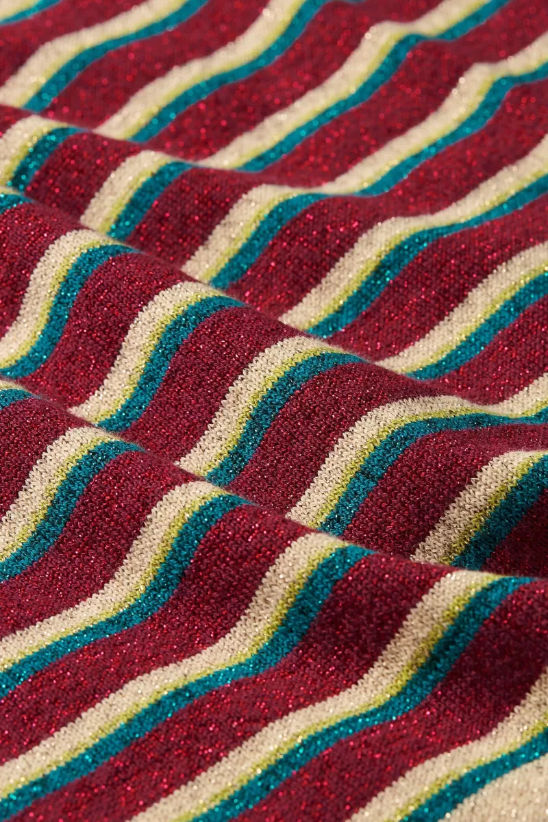 Top Met Dubbele V-HalsKorte MouwenContrasterende RibboordenStretch StofStrepen Patroon Met Glitter