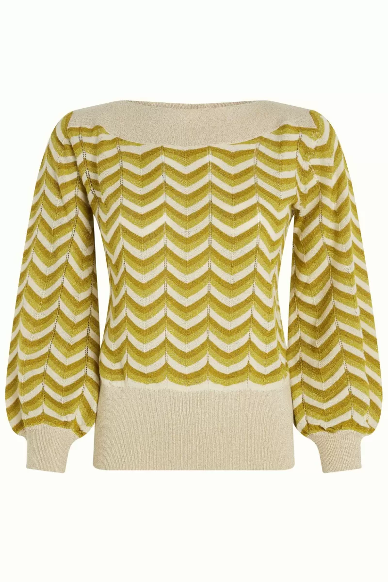 Top Met BoothalsDriekwart Ballonmouwen Met ManchetContrasterende, Geribbelde Zoom En ManchettenAjour Knit Met GlitterStr…