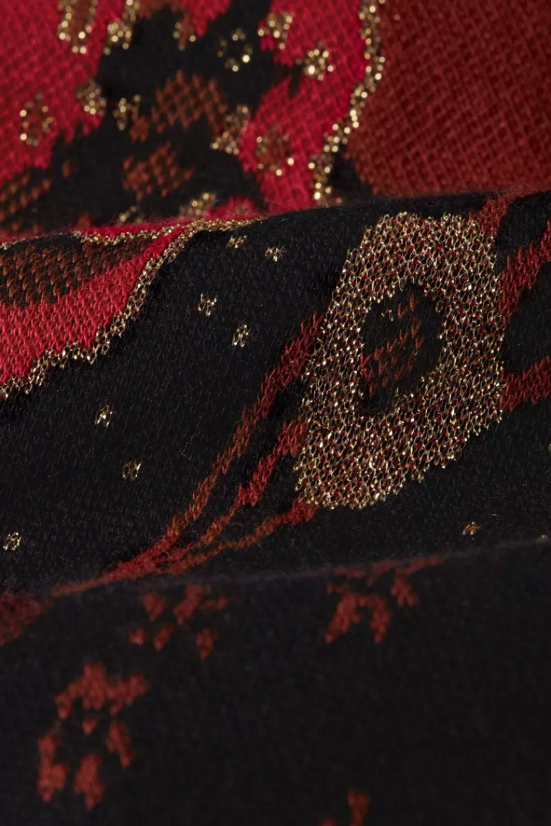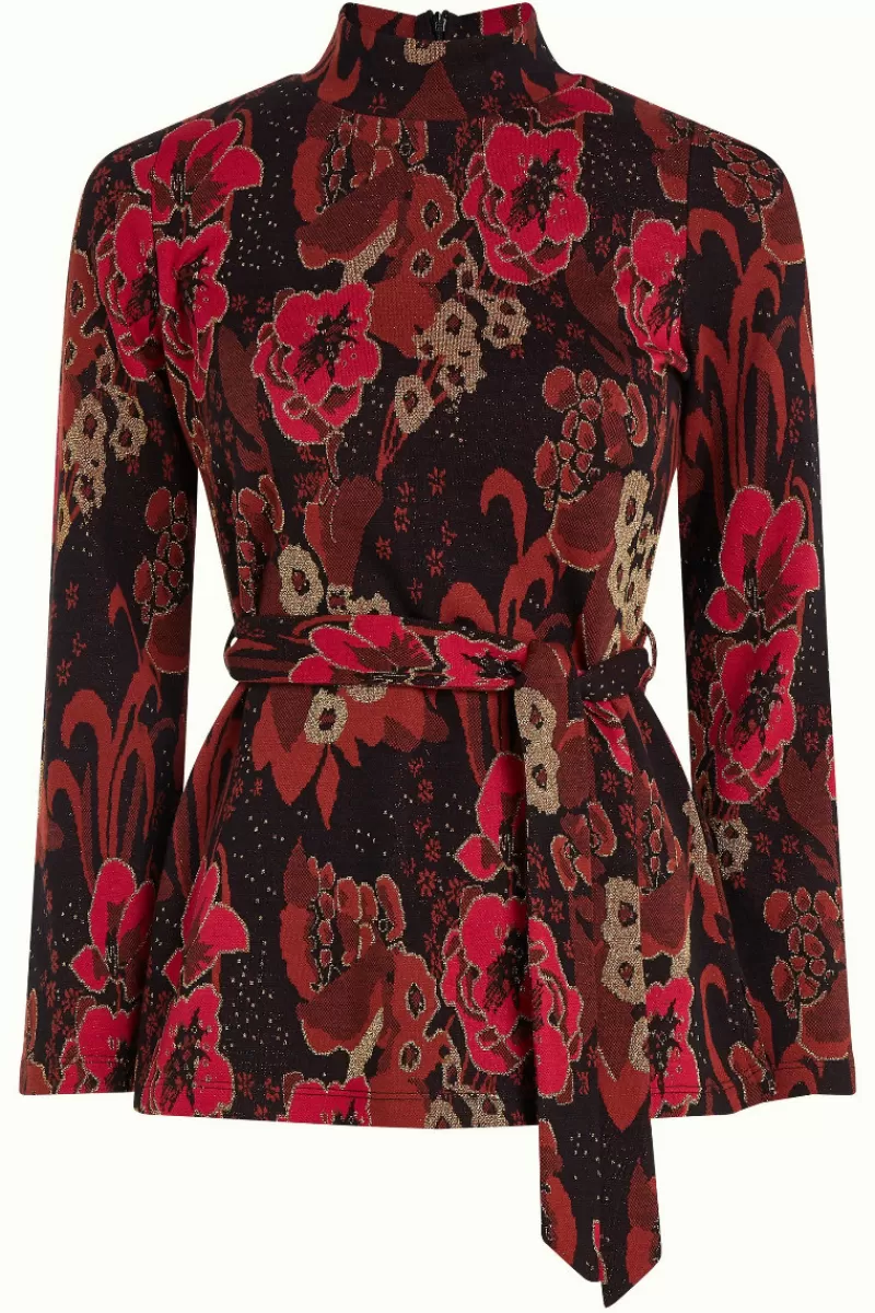 Tuniek Top Met GlitterOpstaande KraagLange Wijde MouwenRitssluiting Op De RugStrikceintuurJersey JacquardStretchstofBloe…