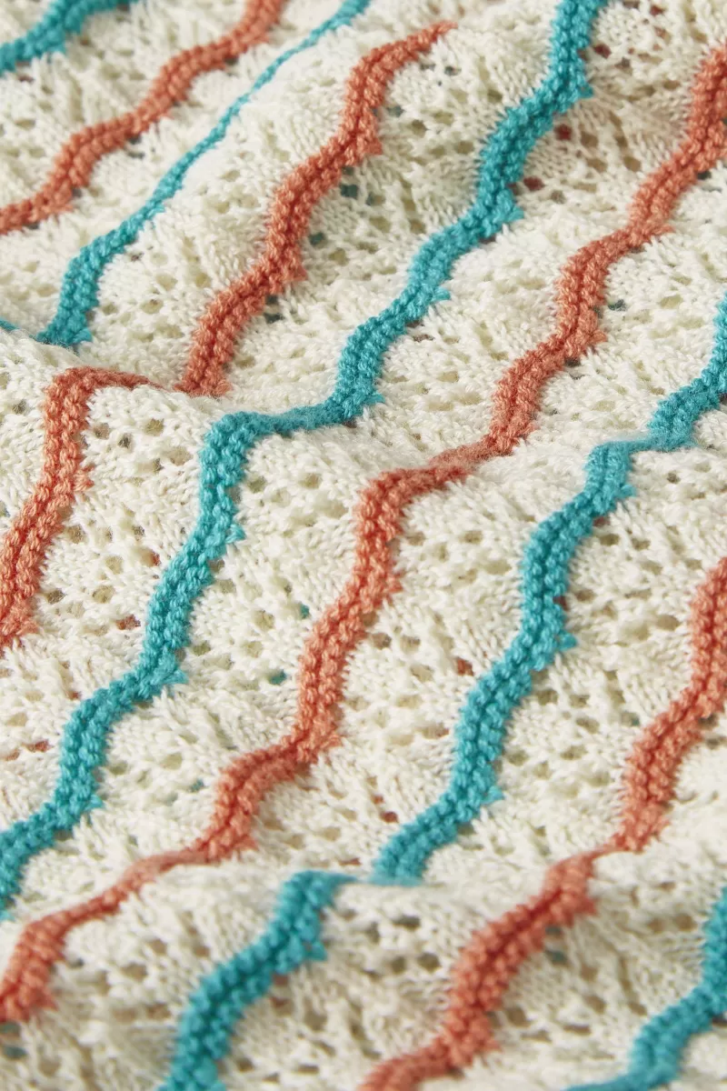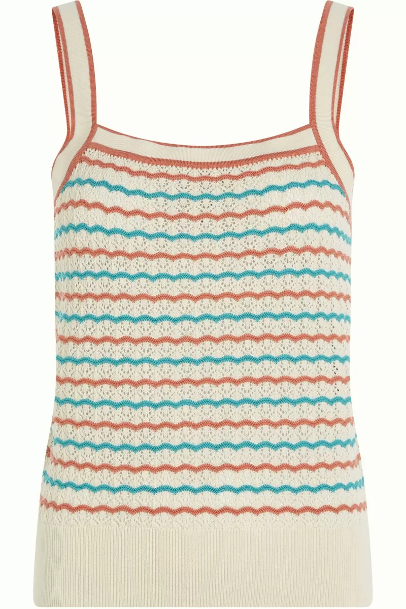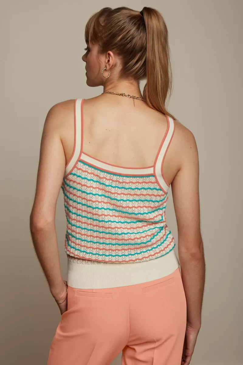 Tank TopSmalle SchouderbandjesRonde HalsContrasterende HalslijnGeribbelde ZoomGebreidStretchGolvend Motief