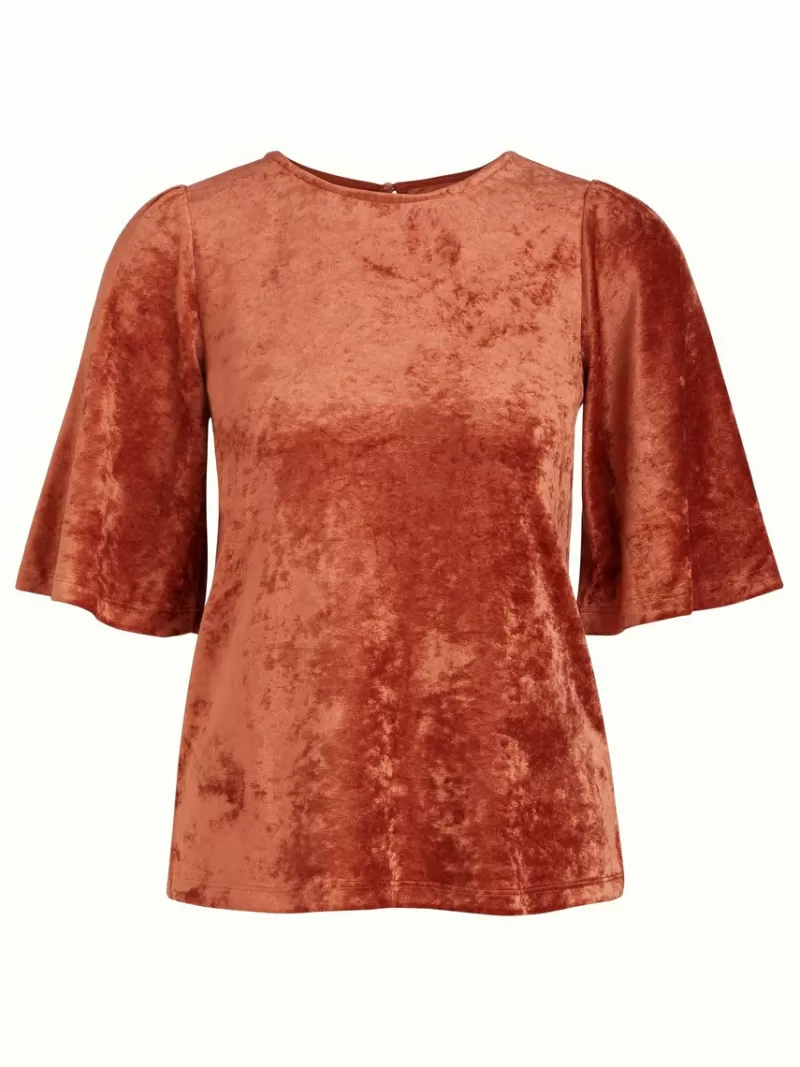 Top Met Losse FitKorte MouwenRonde HalsKeyhole Knoopsluiting Jersey VelvetComfort Stretch