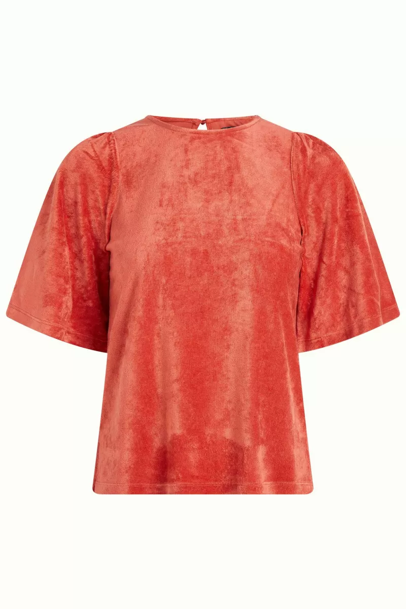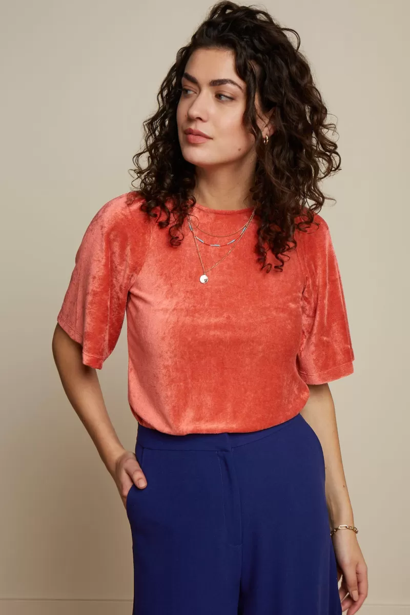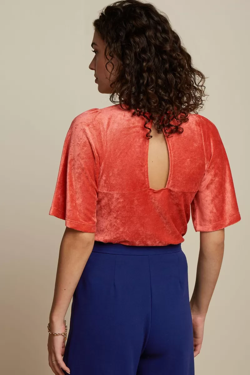 Top Met Losse FitKorte MouwenRonde HalsKeyhole KnoopsluitingJersey VelvetComfort Stretch