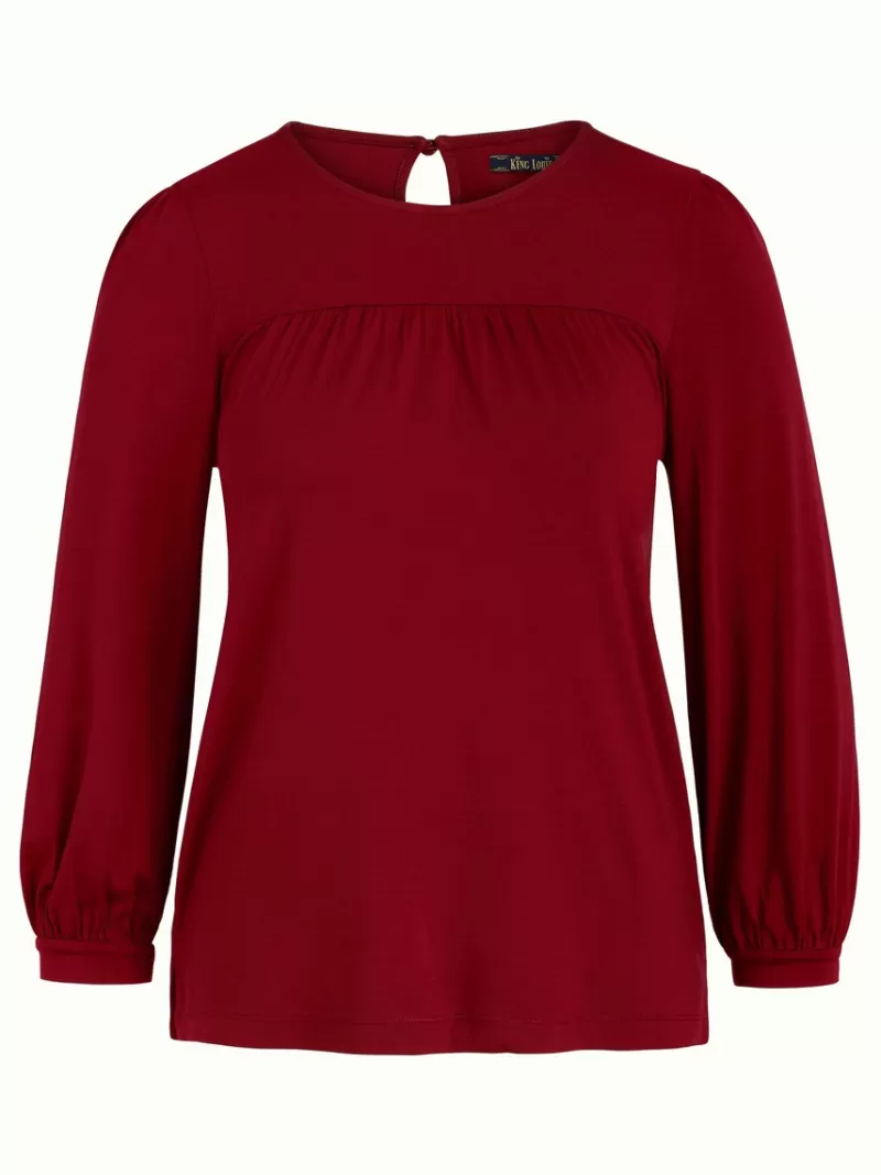 Top Driekwart Mouwen Met ManchettenSmalle Plooitjes Op De BorstKeyhole KnoopsluitingJerseyStretch Stof