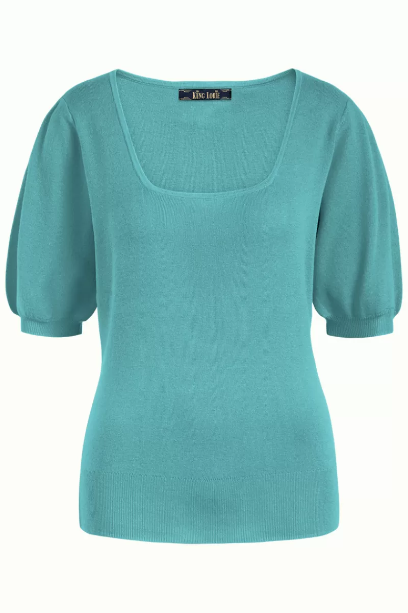 Top Met Vierkante HalsLicht Gepofte MouwenGeribbelde KnitStretchstof