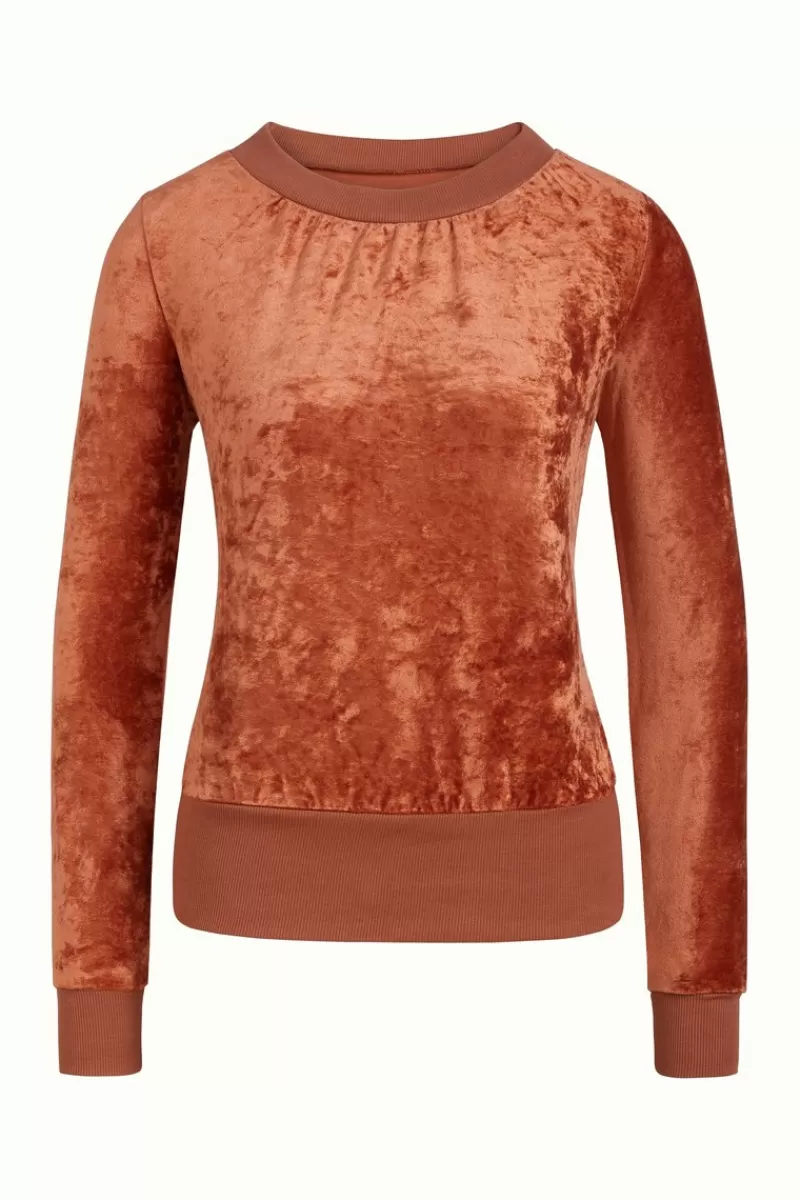 Velvet TopRonde HalsLange Mouwen Met ManchettenGeribbelde Zoom En ManchettenStretch Stof