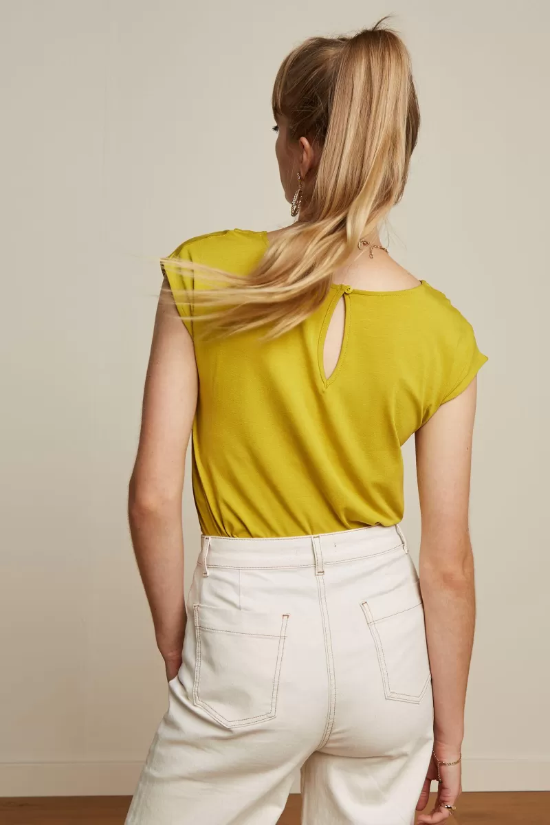 Top Met Losse FitKorte MouwenRonde Halslijn Met PlooienKeyhole Knoopsluiting In De NekJerseyStretchstof