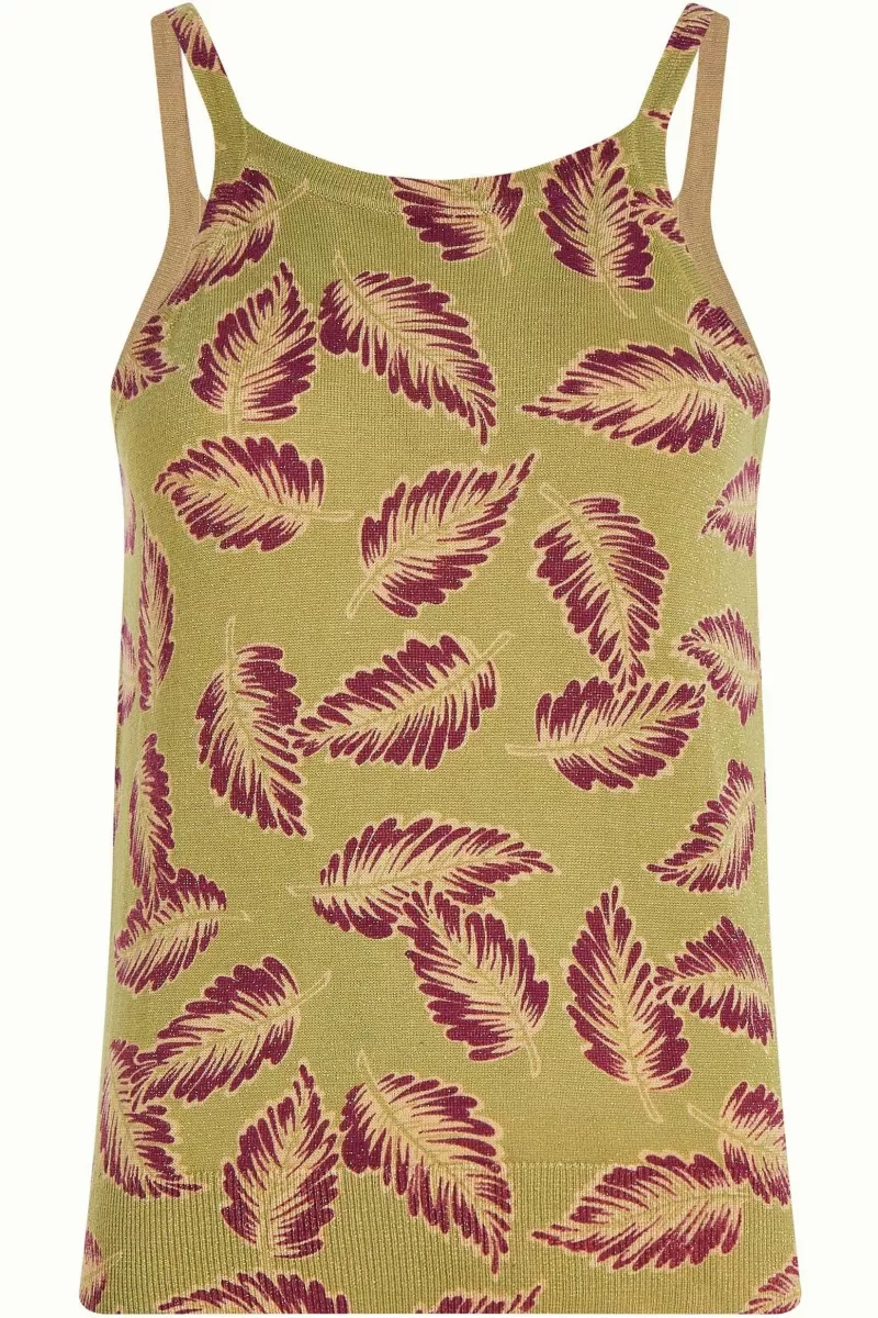 Hooggesloten TanktopSmalle SchouderbandjesGeribbelde Halslijn En ZoomGebreidStretchBladeren Print