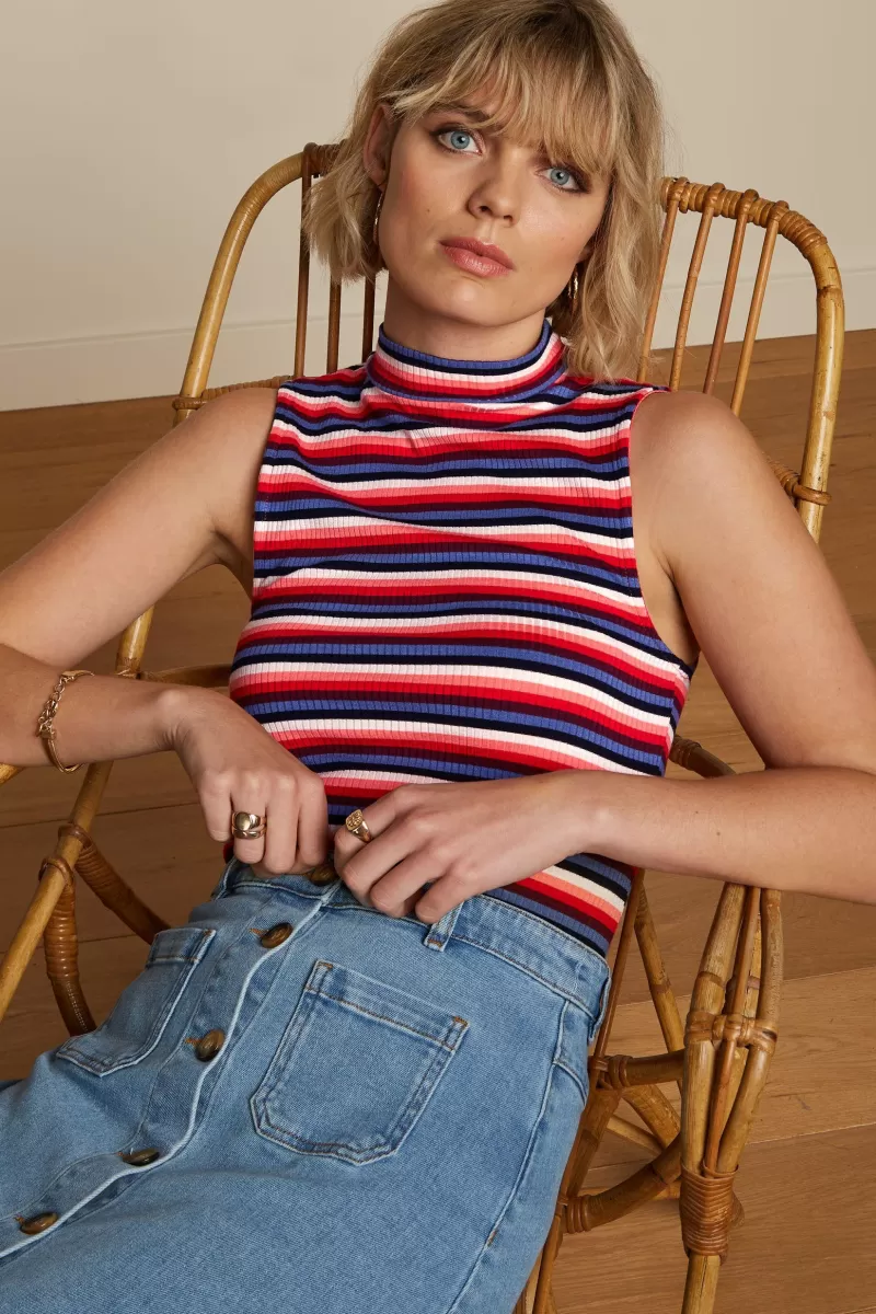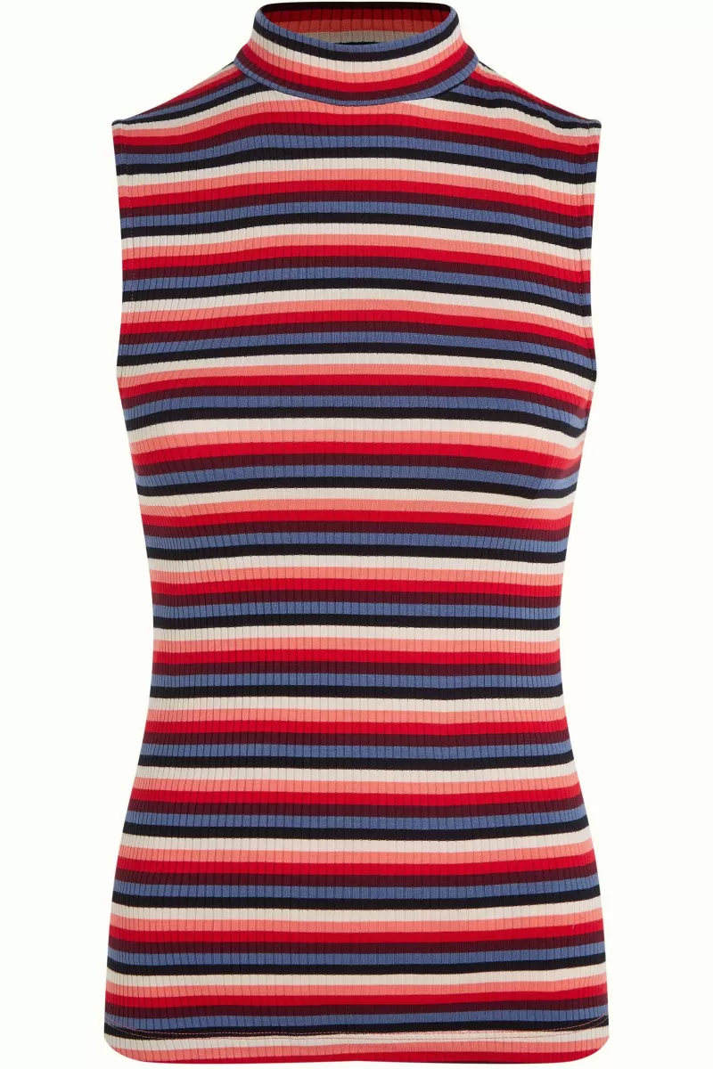 Mouwloze TopColkraagRib JerseyStretchGestreept