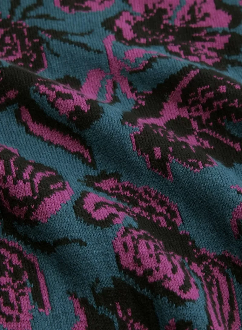 Top Met BoothalsLange MouwenContrasterende, Geribbelde Zoom En ManchettenGebreidStretchBloemenprint