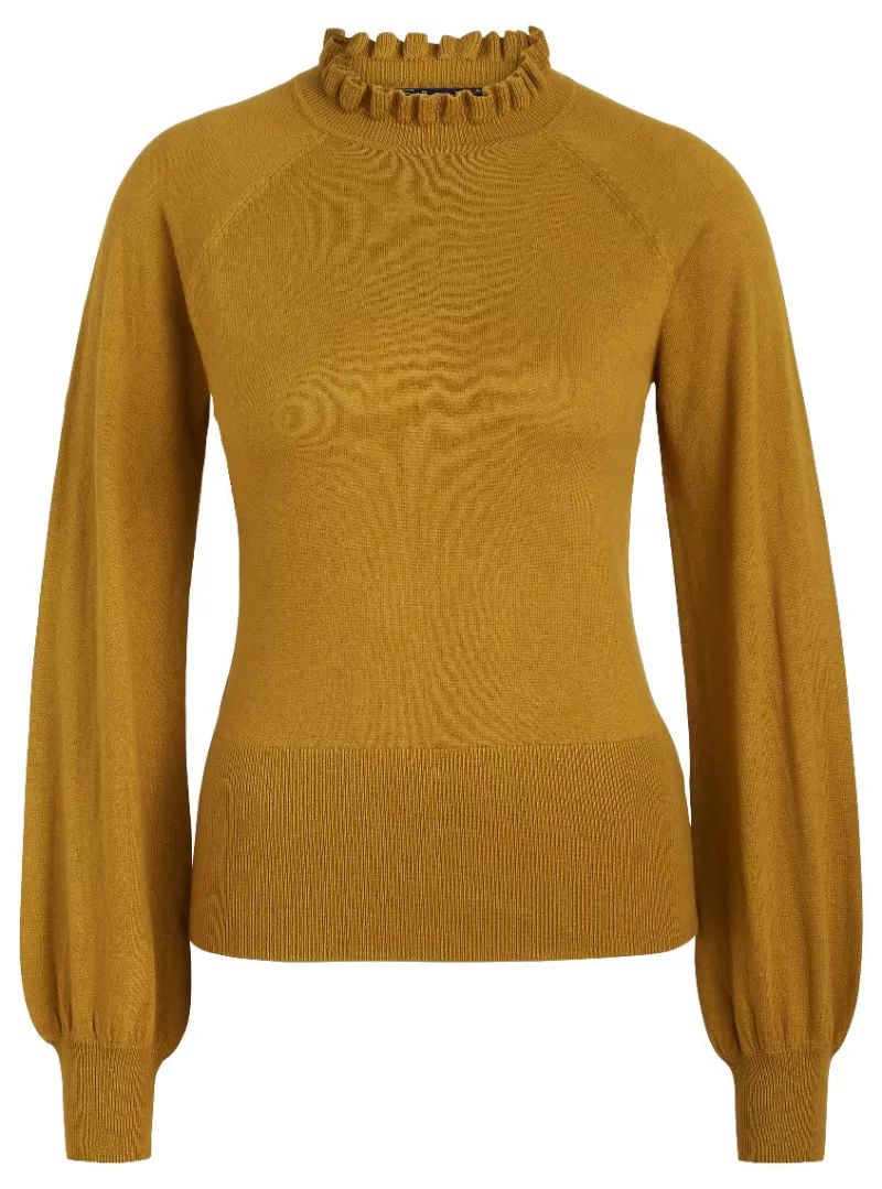 Gebreide TopOpstaande KraagLange Ballonmouwen Met ManchettenGeribbelde Zoom En ManchettenStretch Stof