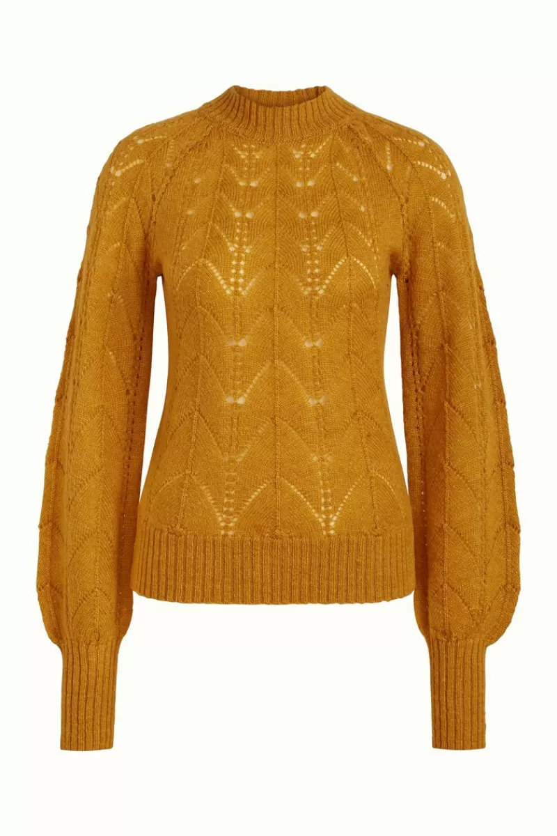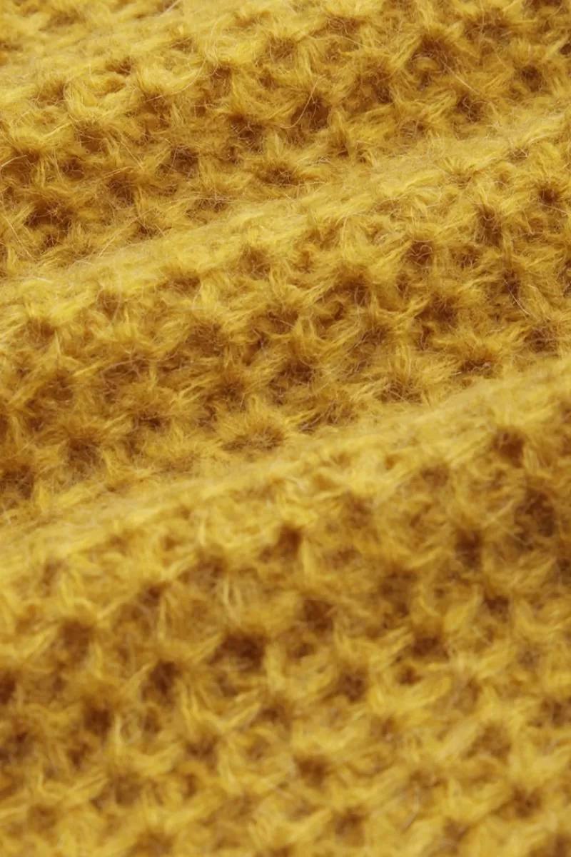 Gebreide Trui Met Raglan MouwenOpstaande KraagBallon MouwenPluizg Ajour BreiselStretch Stof
