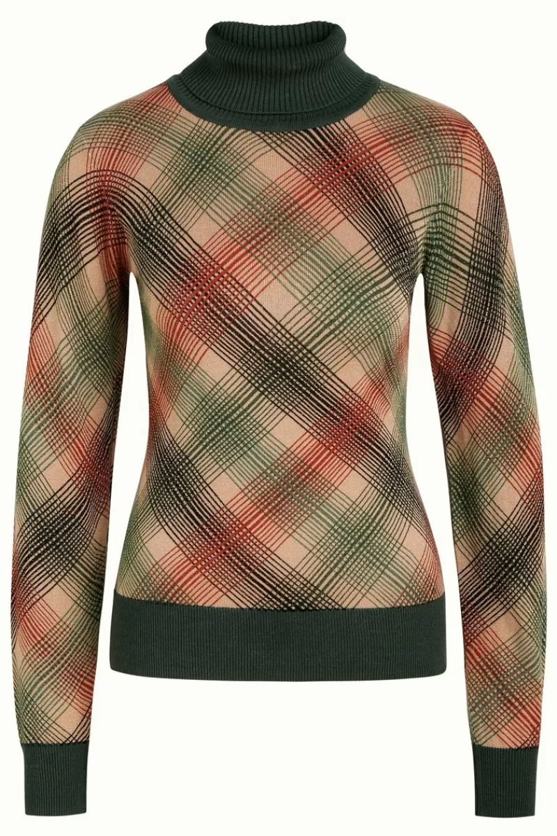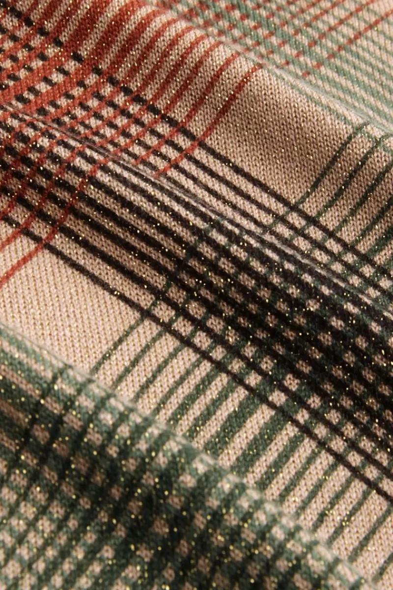 ColtopLange MouwenContrasterende Col, Manchetten En ZoomGeribbelde Zoom En Manchetten.GebreidStretchGeruite Print