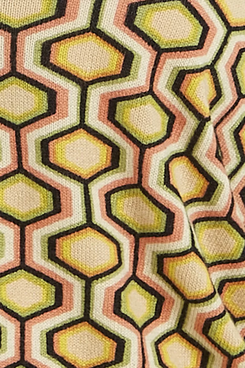 Gebreid VestDiepe V-HalsKnoopsluitingLange MouwenRibboordenGrafische Print
