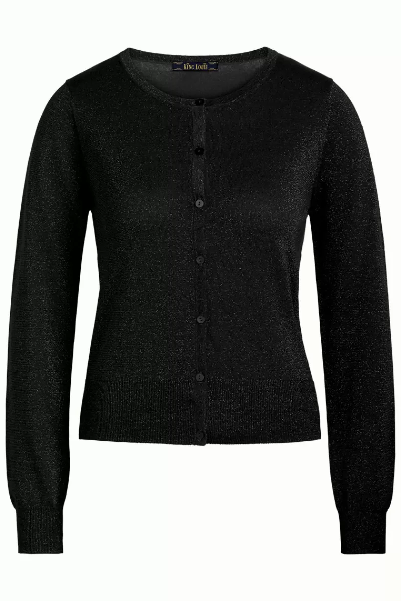 Glitter VestjeRonde HalsLange MouwenKnoopsluitingGeribblede Zoom En ManchettenGebreidStretch Stof
