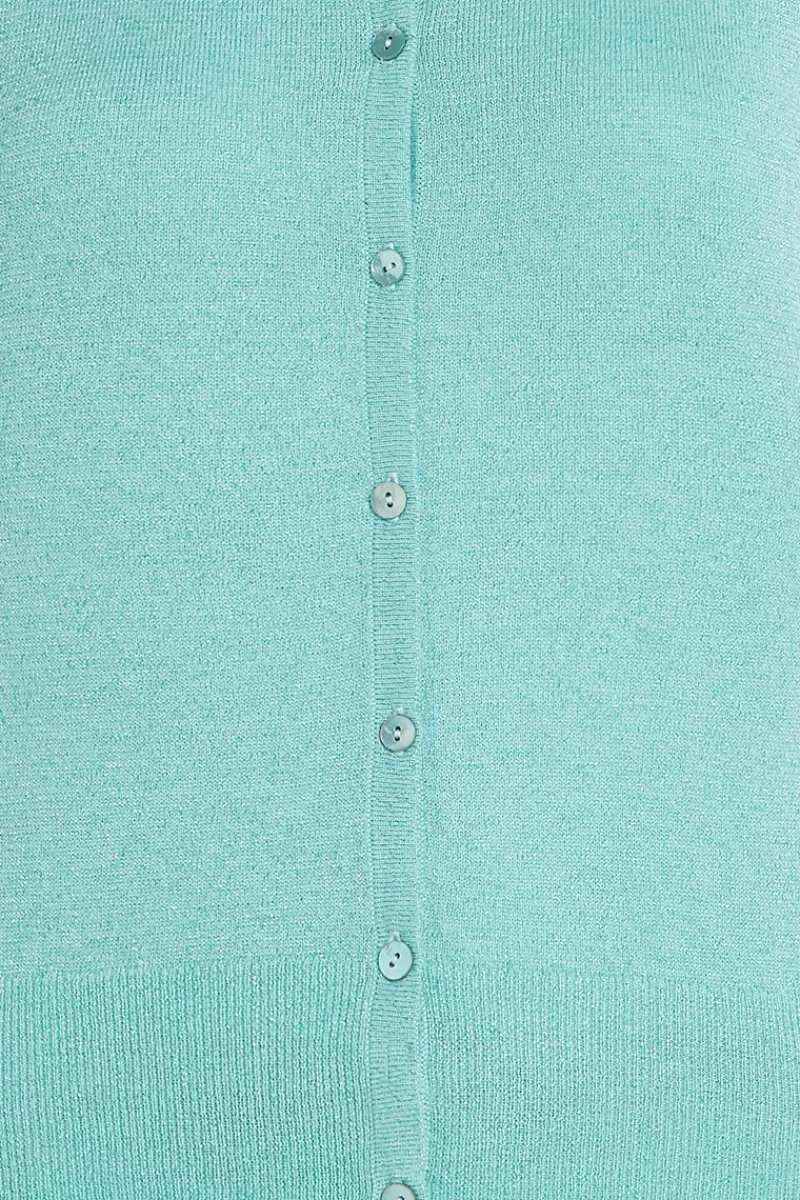 Glitter VestjeRonde HalsLange MouwenKnoopsluitingGeribblede Zoom En ManchettenGebreidStretch Stof