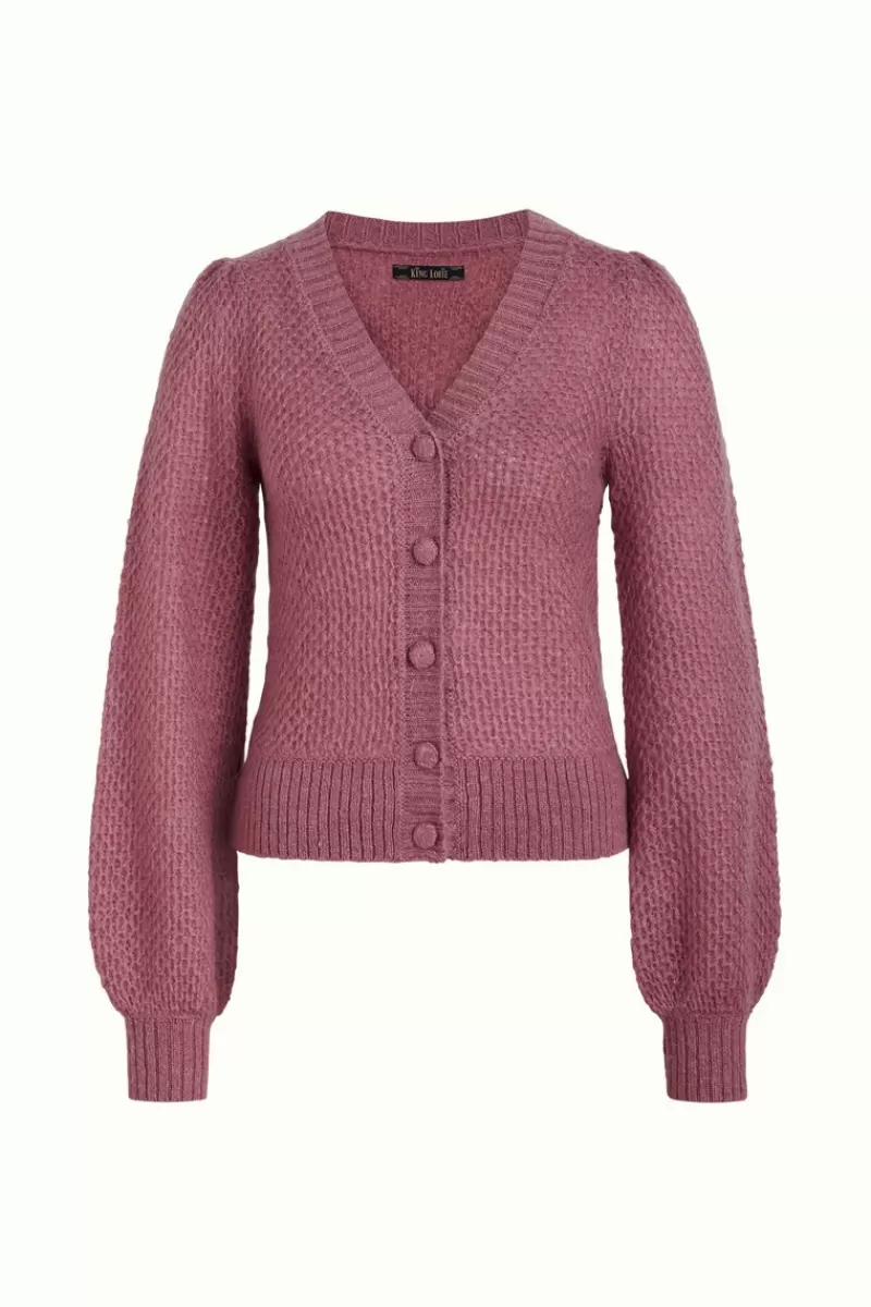 Gebreid VestV-HalsLange Ballon MouwenKnoopsluitingRibboordenPluizige KnitStretch Stof