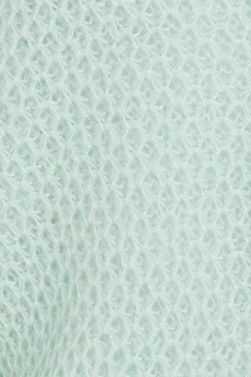 Gebreid VestV-HalsLange Ballon MouwenKnoopsluitingRibboordenPluizige KnitStretch Stof